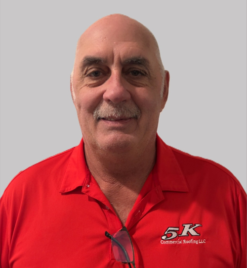 Experience: Over 40 years in commercial roofing; started as a laborer, led a crew, then transitioned into sales in 1990. Has been with 5K Commercial Roofing for nearly 6 years.
